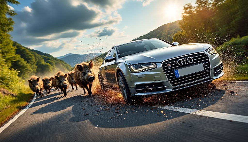 Vous savez, à la fin de la journée, une Audi n'est pas censée se transformer en carrosse des bois, et encore moins s'accorder une danse avec un sanglier. Préférez-vous être témoin d'un spectacle de cirque ? La réalité est tout aussi enivrante, mais le résultat est souvent moins drôle. Des accidents spectaculaires doivent finir par servir de leçon. Au lieu de se battre, il serait plus judicieux d’apprendre à vivre ensemble. Qui sait, la route pourrait alors re-devenir un lieu sûr où l’homme et l’animal se croisent sans se heurter.