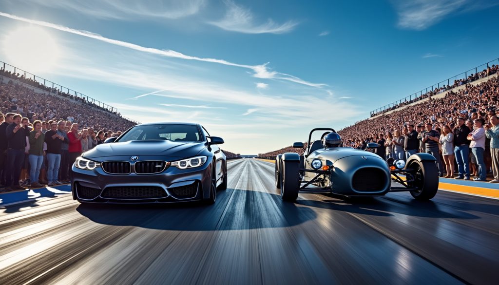 Cette différence de conception entre le poids lourd bavarois et la flèche britannique, plus légère qu’une plume comparée à la M4, trace la ligne de départ d’un affrontement fait de contrastes saisissants. Dans le monde du drag, l’équation ne se résume donc pas à « plus de chevaux = plus rapide », mais à une savante alchimie entre la puissance, le poids, la transmission et surtout l’agilité.